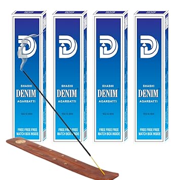 Shashi Denim Agarbatti 280 Incense Sticks Exotic Long Lasting Woody Floral Spicy Musky Aroma For Pooja Meditation Relaxation Home Office Pack Of 4 Each Pack 90gm Amazon In Home Kitchen