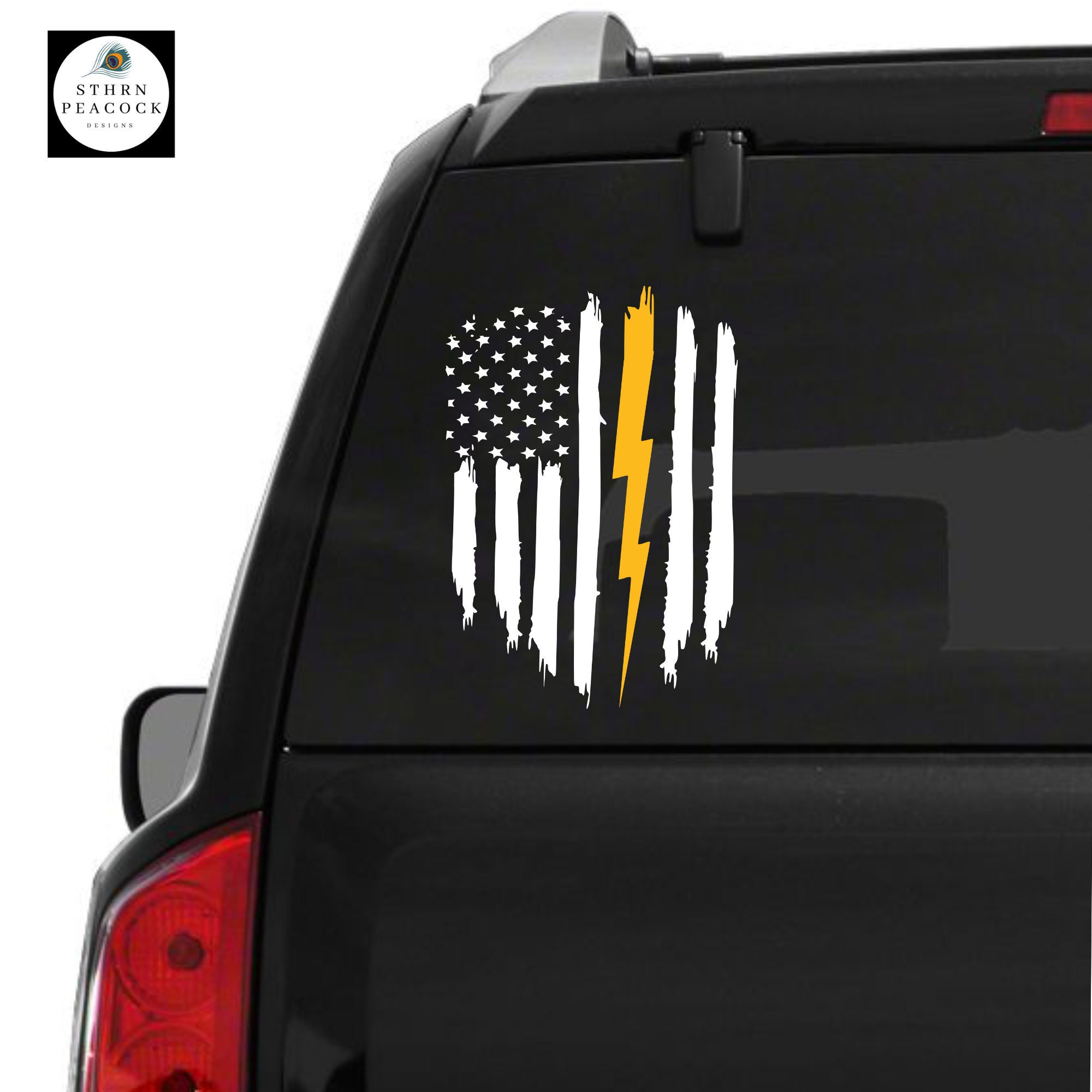 Lightning Bolt Electrician American Flag Vinyl Decal Sticker Etsy